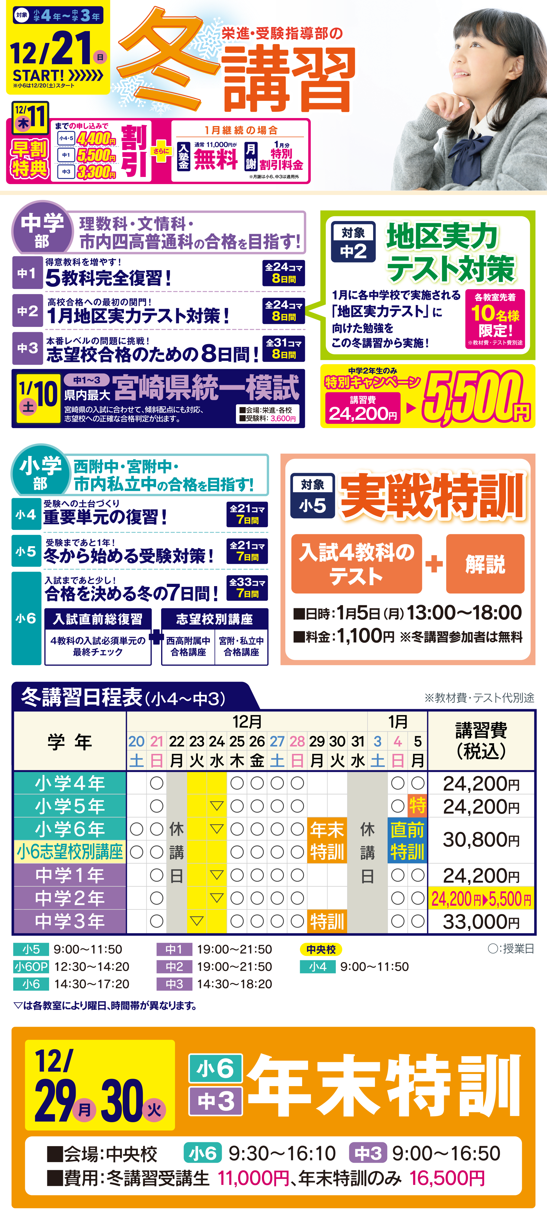 小4〜中3対象 栄進・受験指導部の冬講習